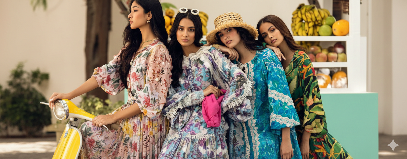 2-Piece Printed Lawn Unstitched Suit - Classic Blue & Pink Floral Design